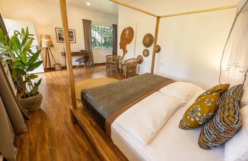Relax and reconnect with nature on our 20,000 sqm lodge grounds and finde balance in one of our 6 COMFORT ROOMS with private terrace. They are divided in the cottages with interconnecting doors comprising of 90 sqm each.